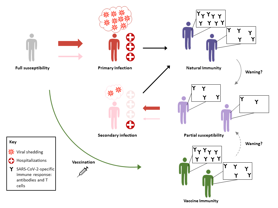 We show in Figure 1 how these concepts are related to population-level immune responses to SARS-CoV-2 due to natural infection or vaccination.